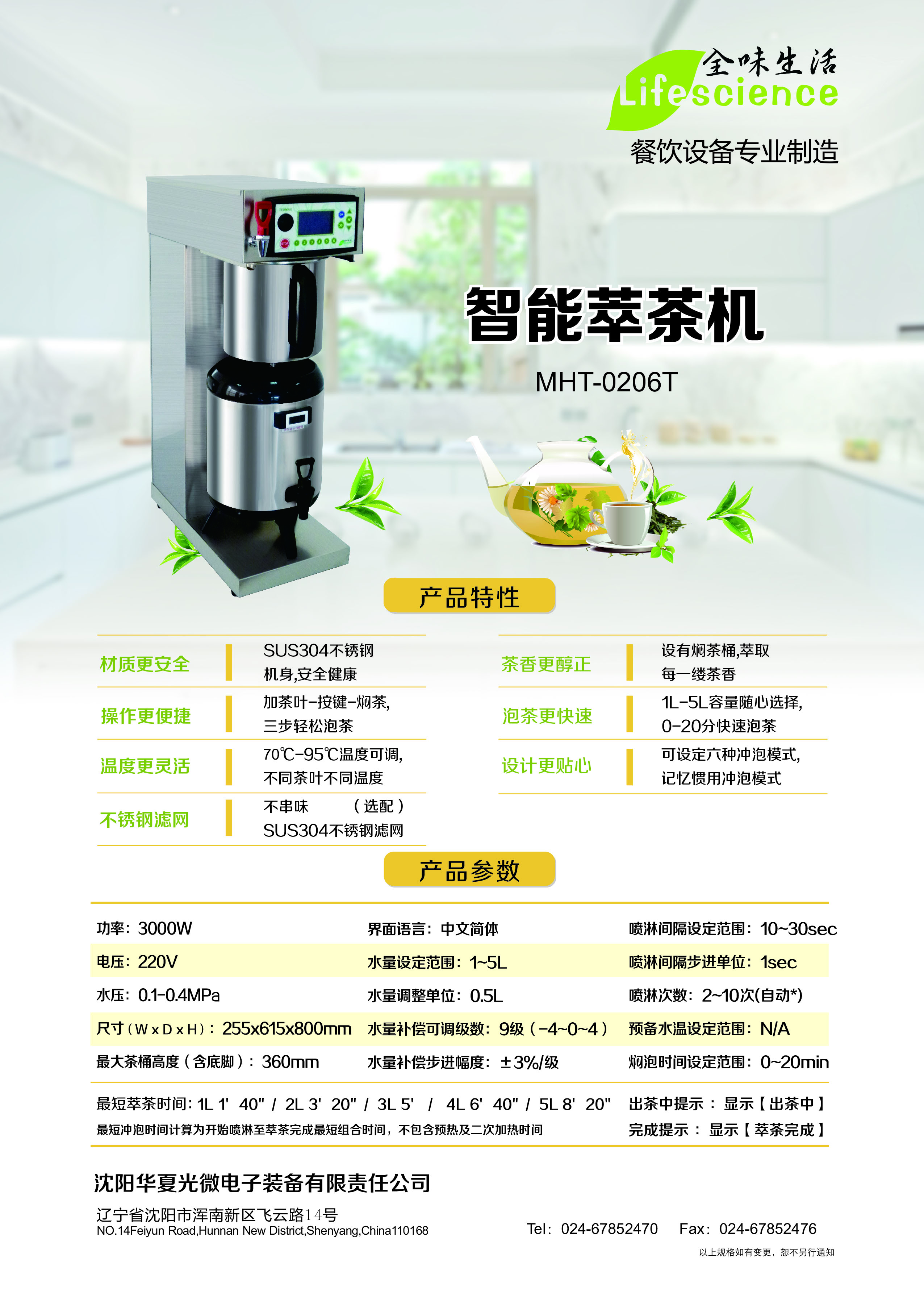 泡茶更快速:1-5L容量随心选择,0-30分钟快速泡茶。