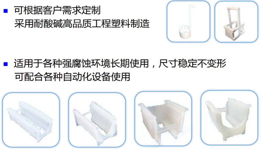 可根据客户需求定制,采用耐酸碱高品质工程塑料制造;适用于各种强腐蚀环境长期使用,尺寸稳定不变形;可配合各种自动化设备使用